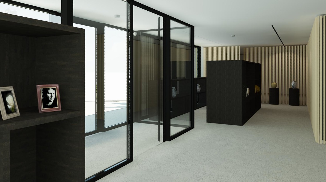 Een groot pluspunt is ook de ruime parking voor een 60-tal wagens. Er werd veel geïnvesteerd in het uitzicht en de belevenis van het rouwcentrum.